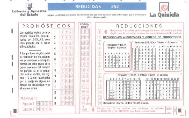 Las reducciones autorizadas y los grupos de pronósticos válidos, están regulados en la Resolución de 6 de julio de 2009, de Loterías y Apuestas del Estado, por la que se aprueban las normas que han de regir los concursos de pronósticos de la Apuesta Deportiva a partir de la primera jornada de la temporada 2009-2010. Esta normativa fue publicada el 23 de julio de 2009 y puede encontrarse íntegramente aquí.