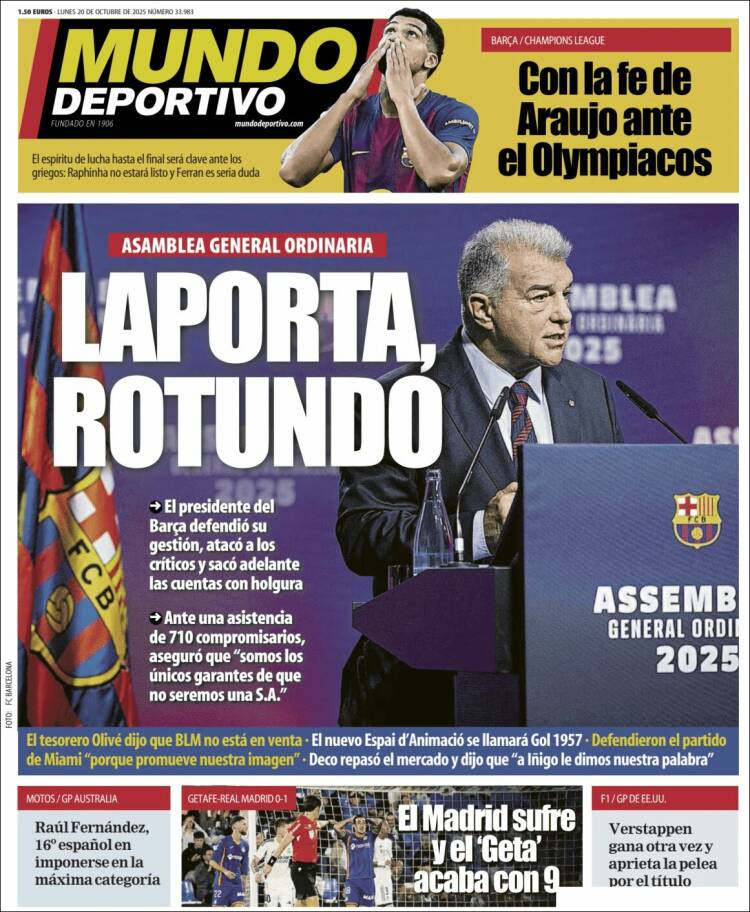 Prensa deportiva de España – Portadas diarios deportivos del lunes 20 de octubre de 2025